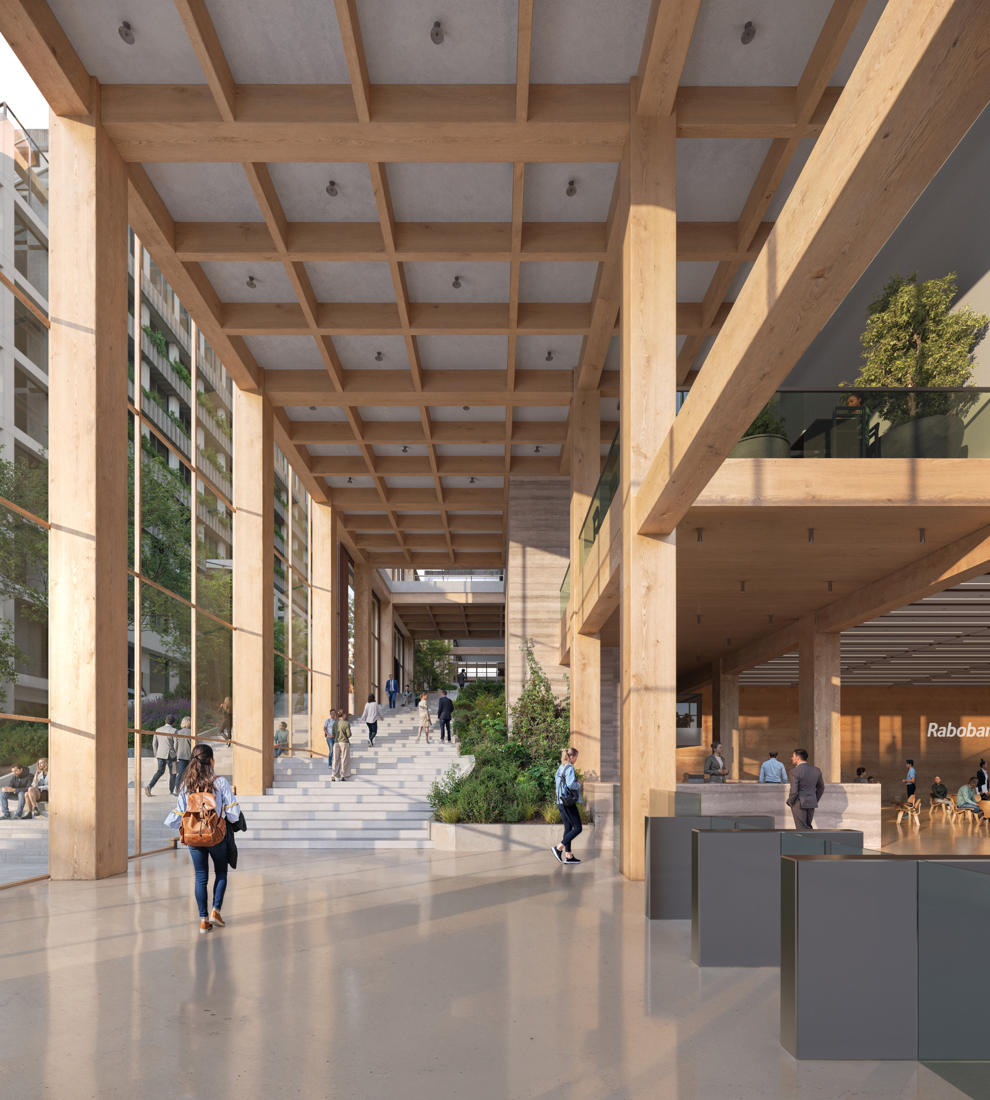 The new complex consists of two new office towers, the renovation of the Zilver building, a multifunctional plinth, one residential tower, and ground-floor apartments. The total office space amounts to approximately 65,000 m². Rabobank aims to respond to the organisation’s growth and the centralisation of workplaces in Utrecht with this expansion.